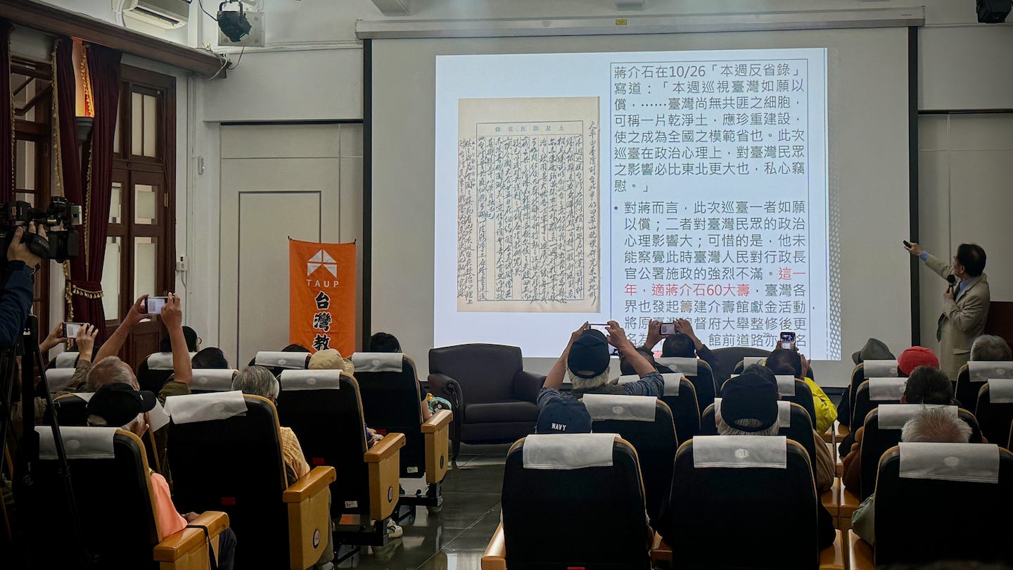 然後又投影一頁蔣介石的日記,證明他知道陳儀對台灣情勢有所扭曲,但仍選擇保護他。