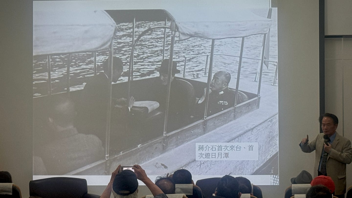 他在螢幕上投出一張蔣介石與陳儀在日月潭同船而行的照片,語氣幾乎帶著一點勝利感「他倆顯然非常親近。」